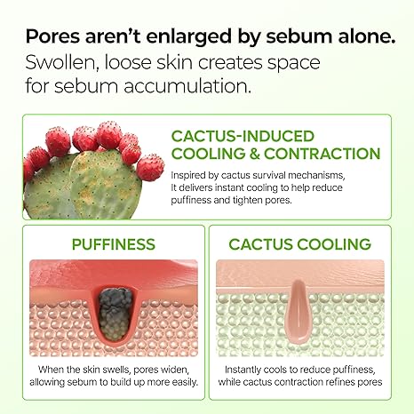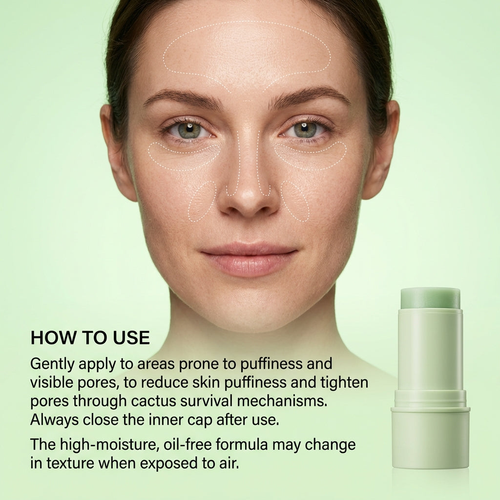 Cactox is designed for instant visual refinement and touch-ups, combining a cooling sensation with a lightweight balm format — not a heavy primer or a long-term treatment serum.